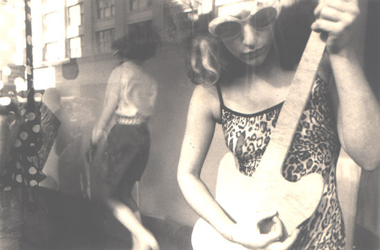 Market Street San Francisco * California Special help from: Kal Berlones, Scott Ryser, The Units, Tom Matty, Ernest Fritz and Diane Daniels. Windows organized by Michael Osterhout. The piece took place inside the display windows of the J.C. Penny building, downtown San Francisco, from 10:00 a.m. to 5:00 p.m. The audience was anyone who happened to be walking by on the street. I painted the windows black on the inside. About seven people came on the day of the performance to participate. I instructed them to stand very close to the inside of the windows. I began to scrape away the paint which revealed certain parts of their bodies on the the outside of the windows. Behind them on the walls of the display area, I projected slides I had taken previously at the windows of people walking by on the street, among other slides I had taken. A San Francisco synthesizer band called the Units were simultaneously playing their music which helped illustrate and enhance the mood of the action. As the day progressed, more paint was scraped away and more of what was behind the glass was revealed to the public. The piece ended when there was no more paint on the windows. -R.W. (Rachel Webber) |